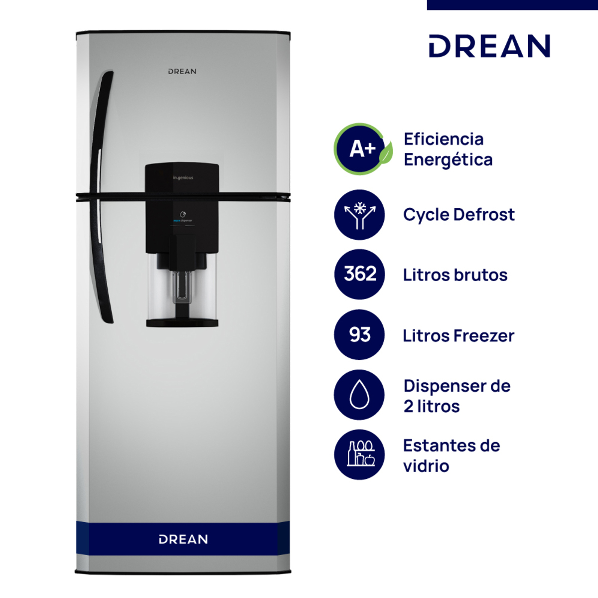 La Heladera Drean HDR370F61S combina funcionalidad, eficiencia y estilo, ideal para mantener tus alimentos frescos y organizados. Con capacidad bruta de 362 litros, incluye freezer cíclico, ofreciendo espacio suficiente para toda la familia.